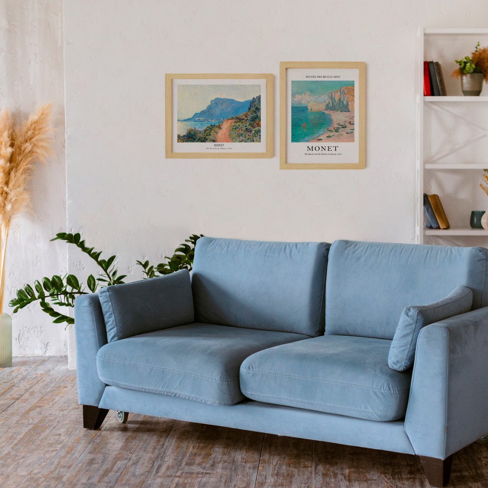 Claude Monet Doğal Ahşap Çerçeveli 2'li Tablo Seti