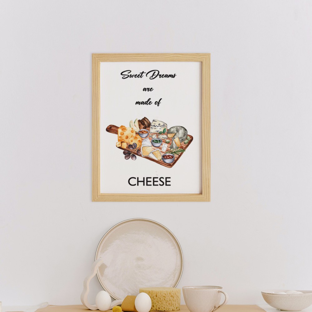 Cheese Lovers-Peynir Seven Doğal Ahşap Çerçeveli Tekli Tablo Seti