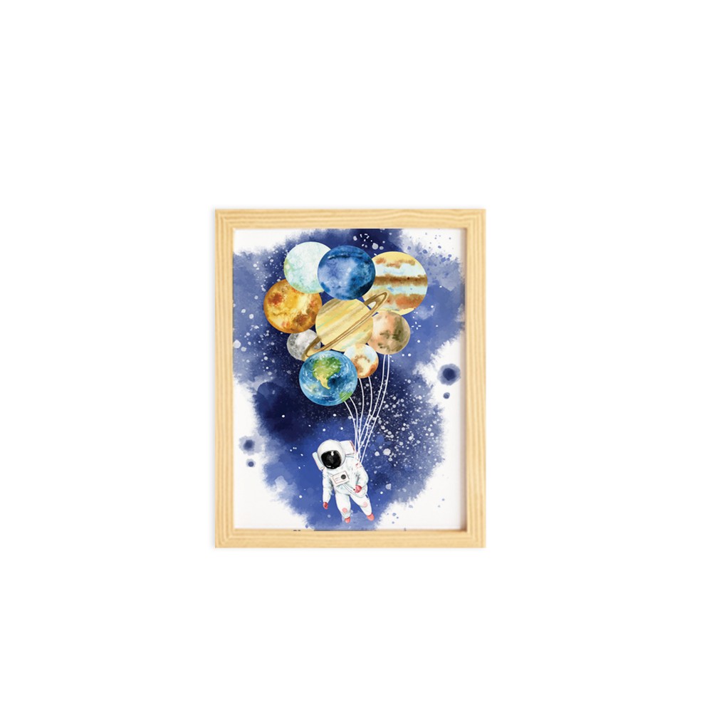 Çocuk & Bebek Odası Astronot Gezegen Doğal Ahşap Çerçeveli Tekli Tablo Seti