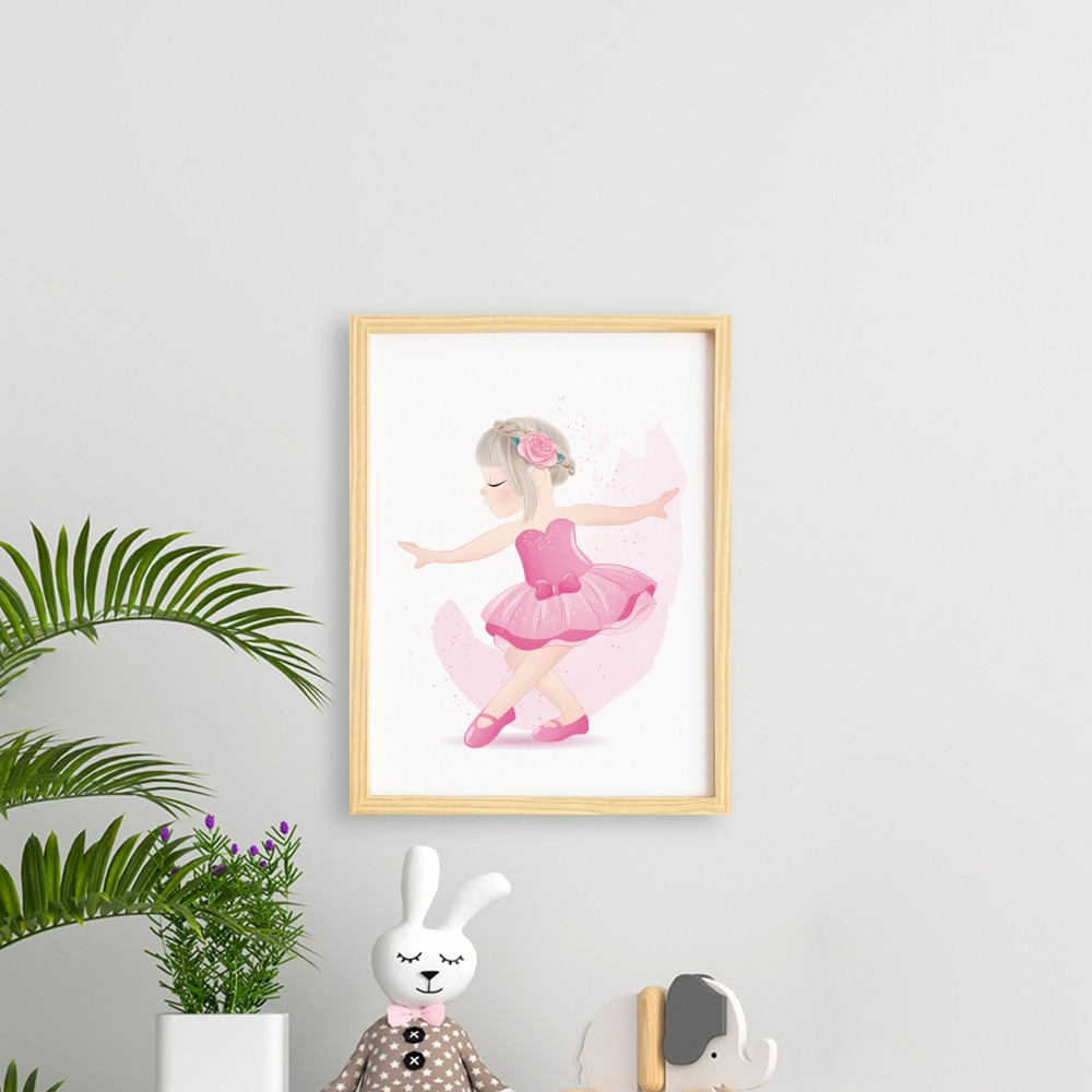 Çocuk Ballet-Balerin Doğal Ahşap Çerçeveli Tekli Tablo Seti