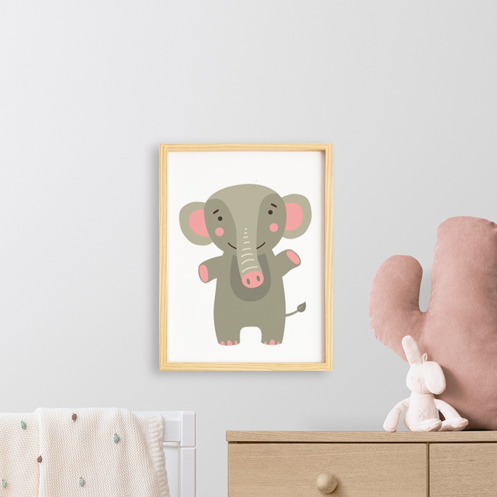 Çocuk Elephant-Fil Doğal Ahşap Çerçeveli Tekli Tablo Seti