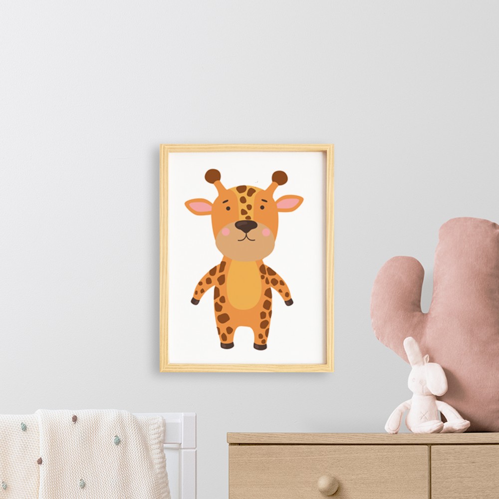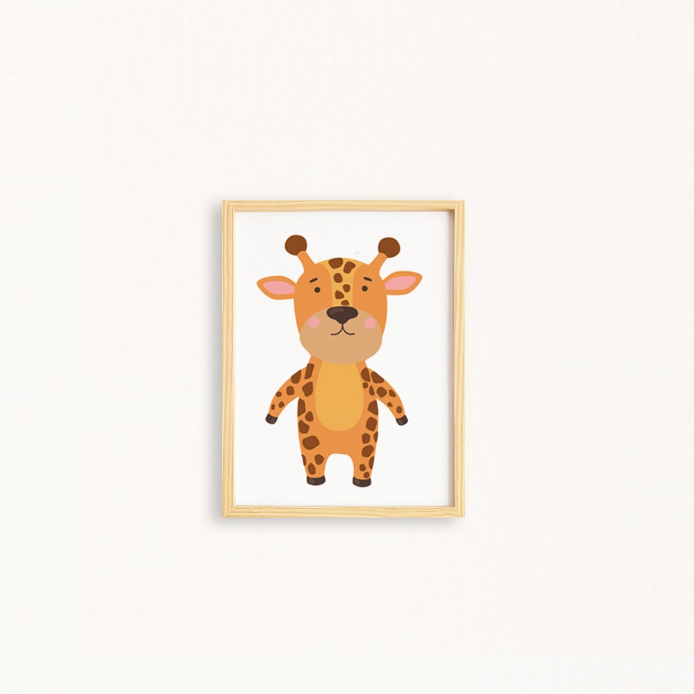 Çocuk Giraffe-Zürafa Doğal Ahşap Çerçeveli Tekli Tablo Seti