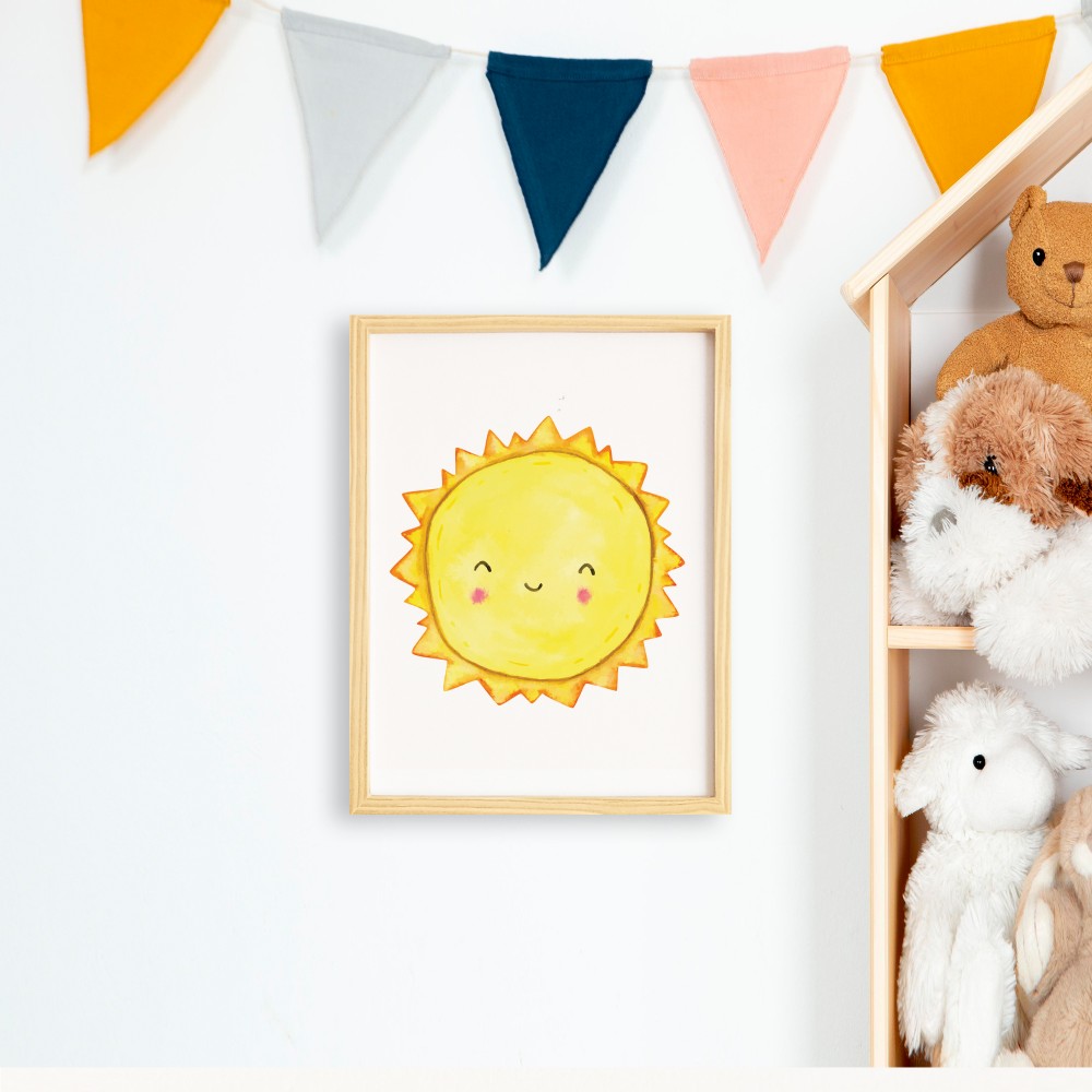 Çocuk Güneş-Sun Doğal Ahşap Çerçeveli Tekli Tablo Seti