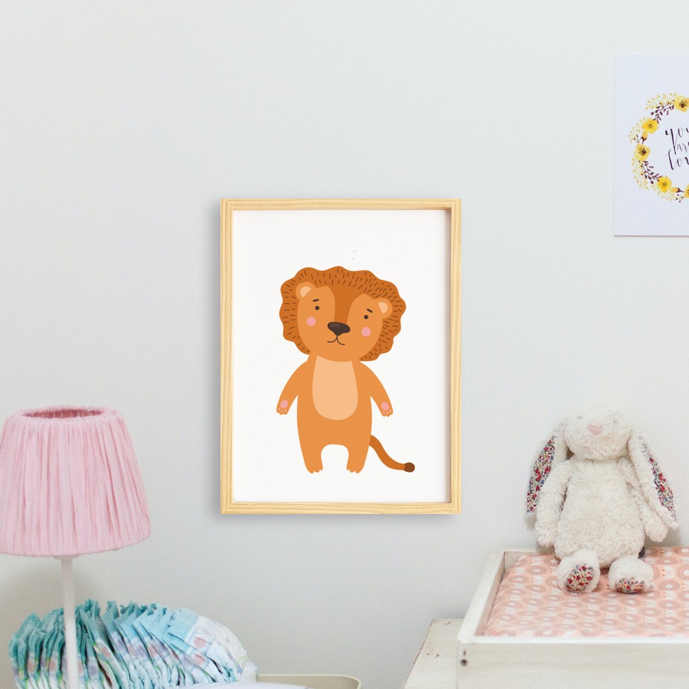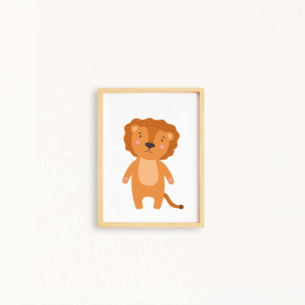 Çocuk Lion-Aslan Doğal Ahşap Çerçeveli Tekli Tablo Seti