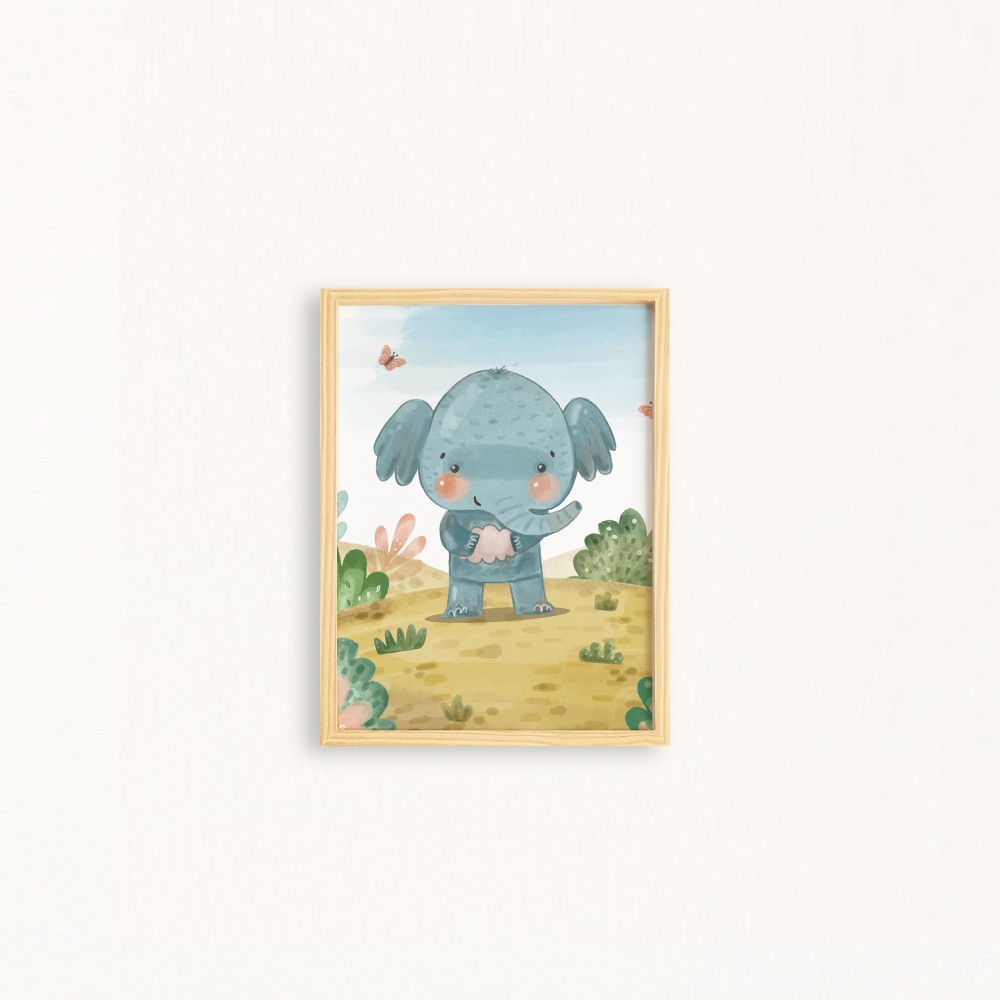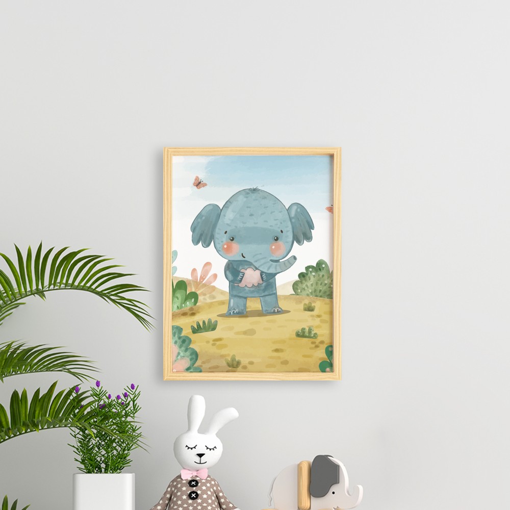 Çocuk Meadow Elephant-Kırda Fil Doğal Ahşap Çerçeveli Tekli Tablo Seti