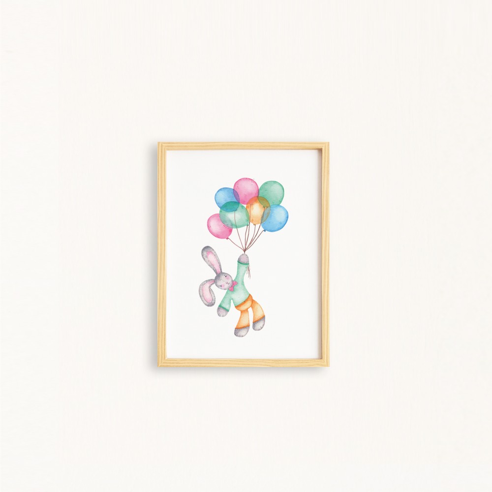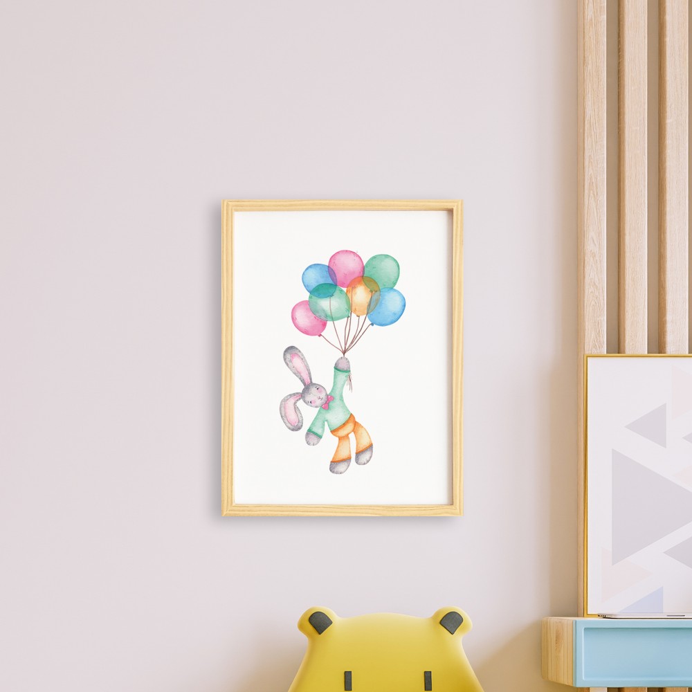 Çocuk Rabbit Baloons-Tavşan Doğal Ahşap Çerçeveli Tekli Tablo Seti