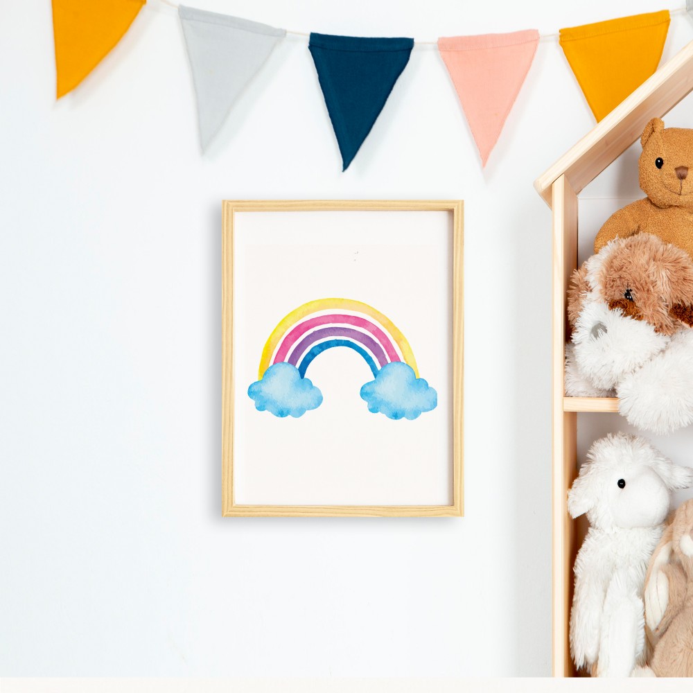 Çocuk Rainbow-Gökkuşağı Doğal Ahşap Çerçeveli Tekli Tablo Seti