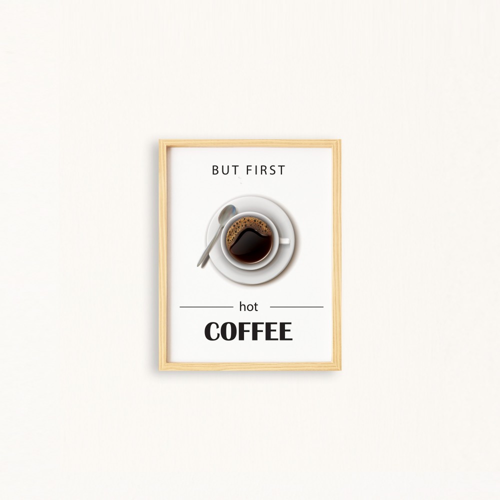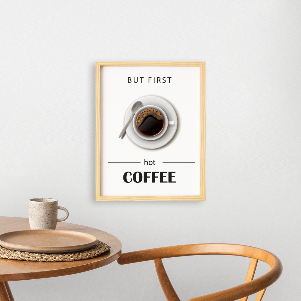 Mutfak-Önce Kahve-First Coffee Doğal Ahşap Çerçeveli Tekli Tablo Seti