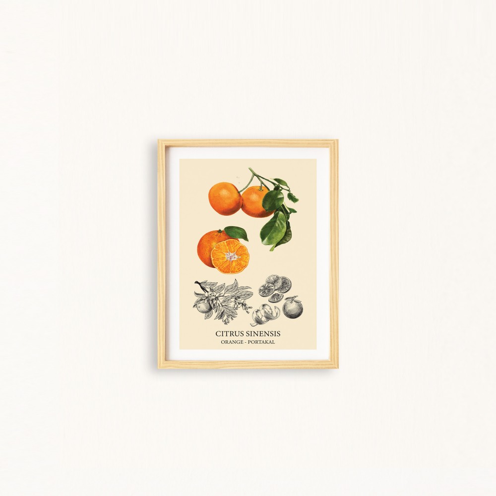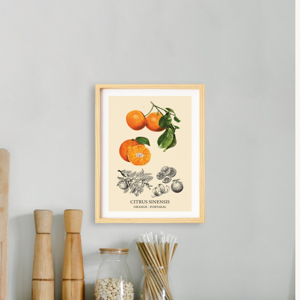 Mutfak-Vintage Portakal Doğal Ahşap Çerçeveli Tekli Tablo Seti