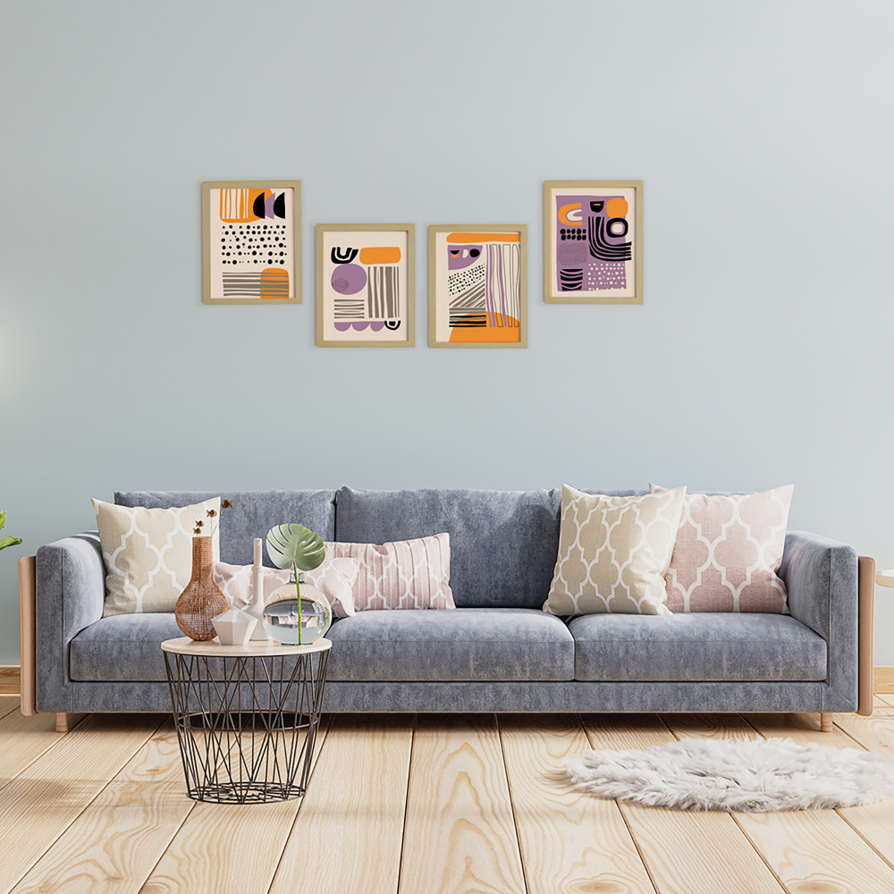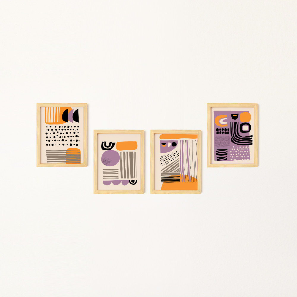 Turuncu Mor Doğal Ahşap Çerçeveli 4'lü Tablo Seti