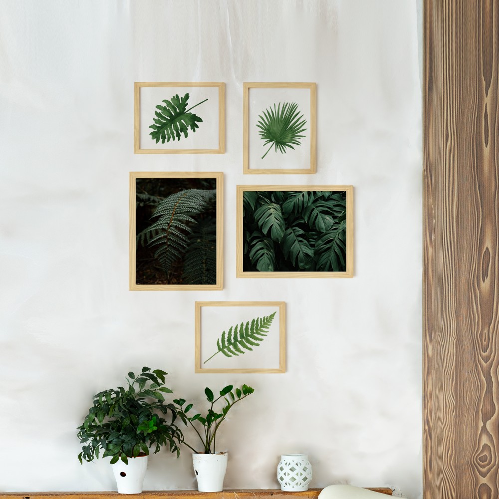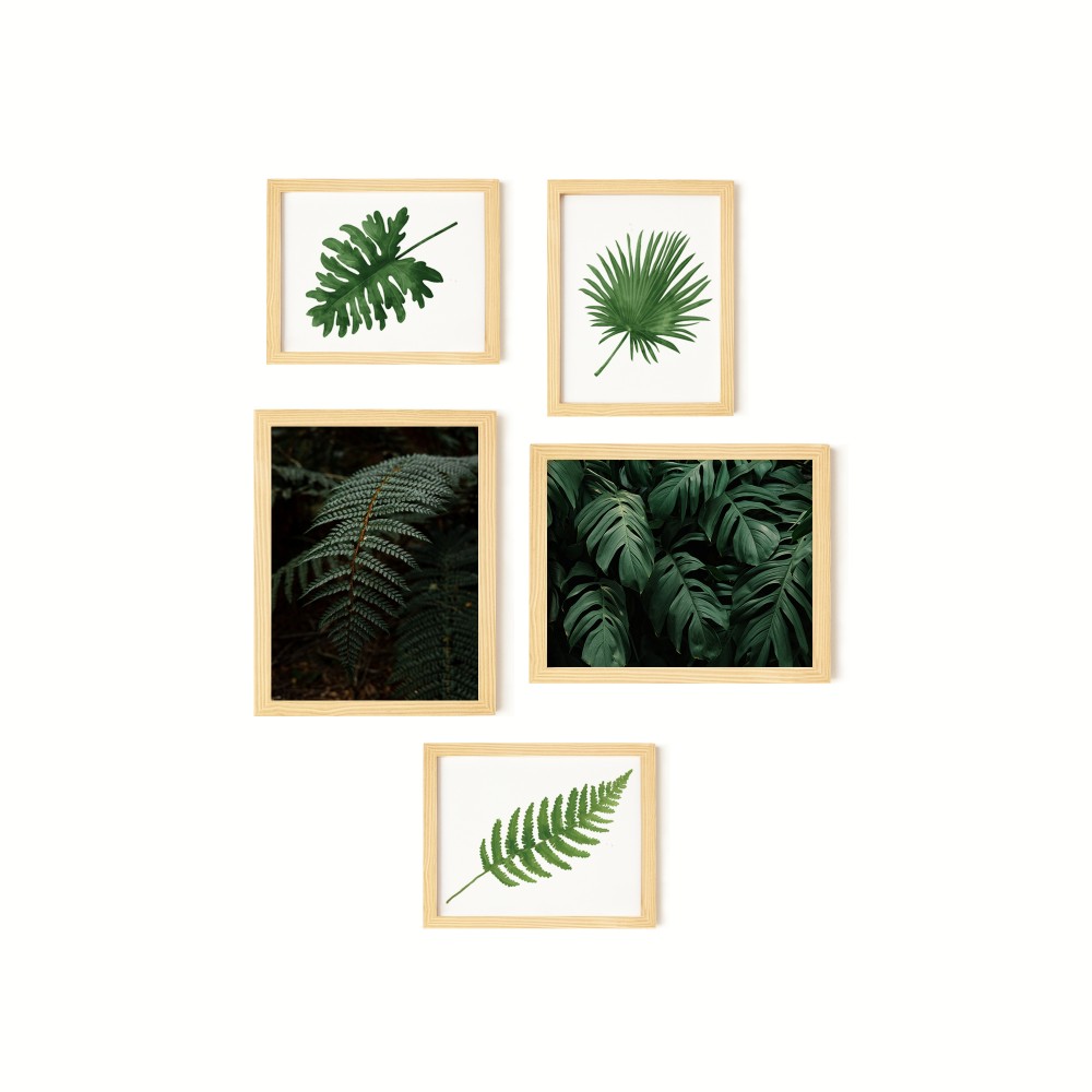 Forest Leaf Doğal Ahşap Çerçeveli 5'li Tablo Seti