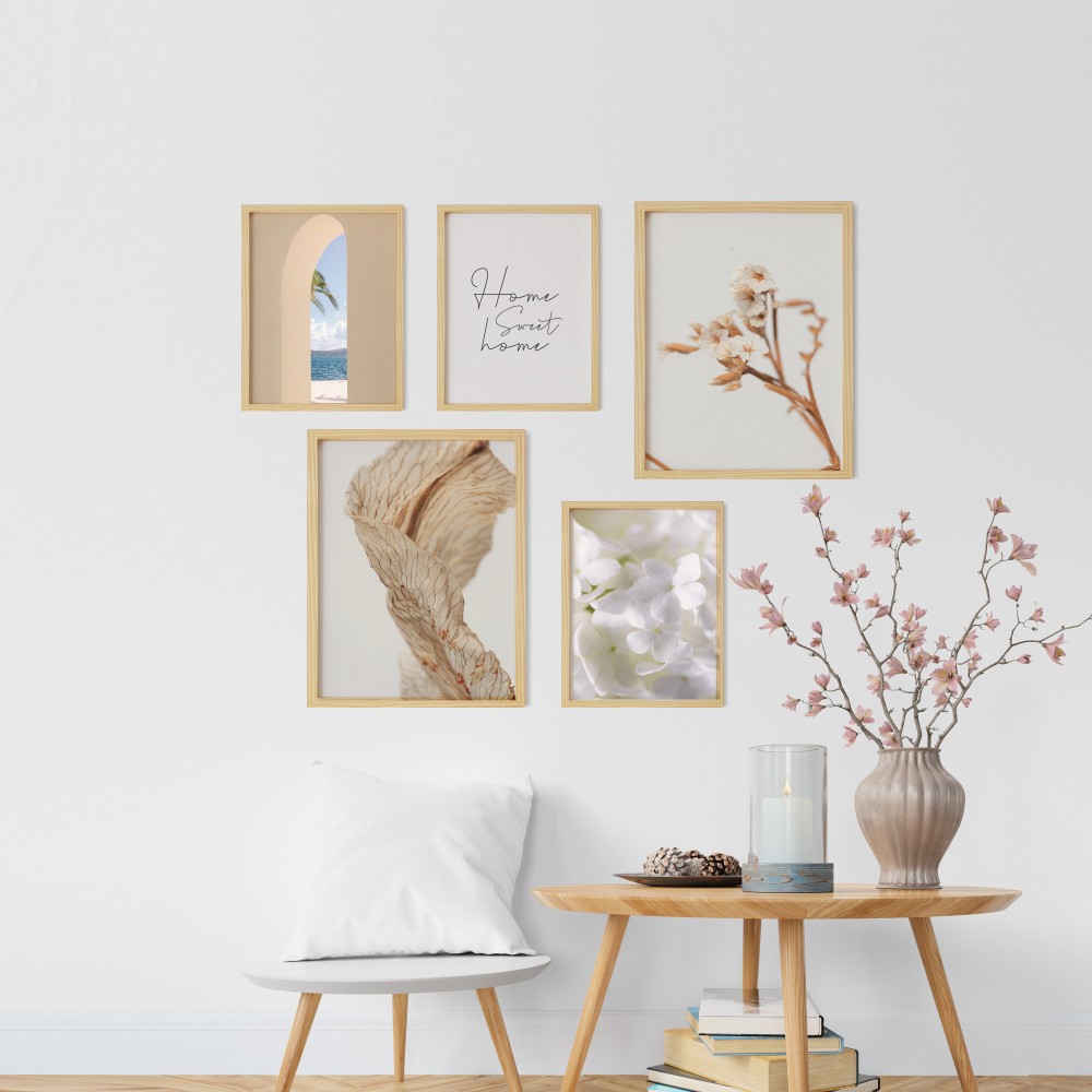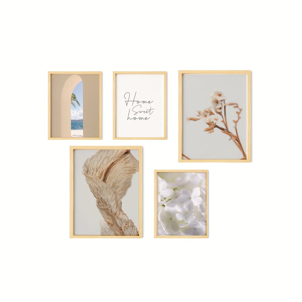 Home Love-Ev Aşkı Doğal Ahşap Çerçeveli 5'li Tablo Seti