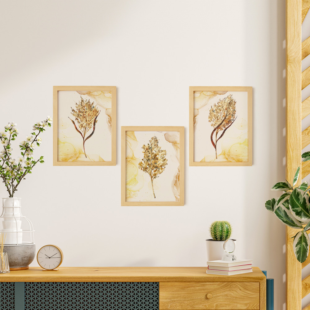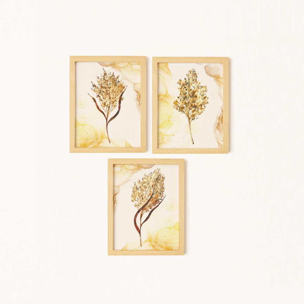 Pampas Doğal Ahşap Çerçeveli 3'lü Tablo Seti