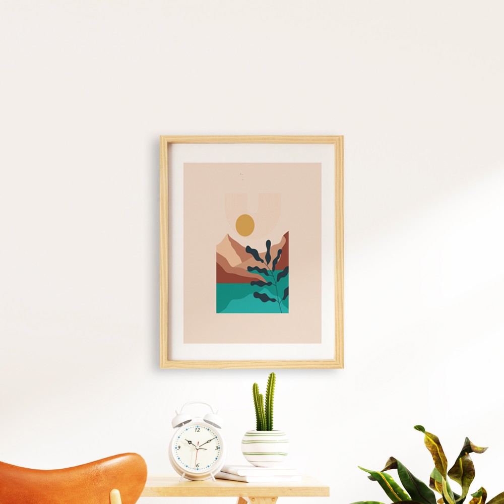Bohem-Gün2 Doğal Ahşap Çerçeveli Tekli Tablo Seti