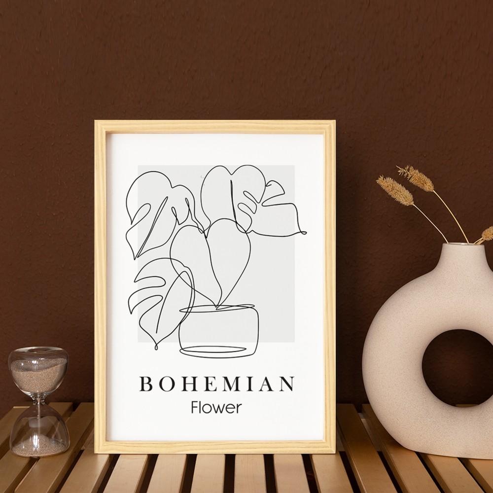 Bohemian Flower Doğal Ahşap Çerçeveli Tekli Tablo Seti