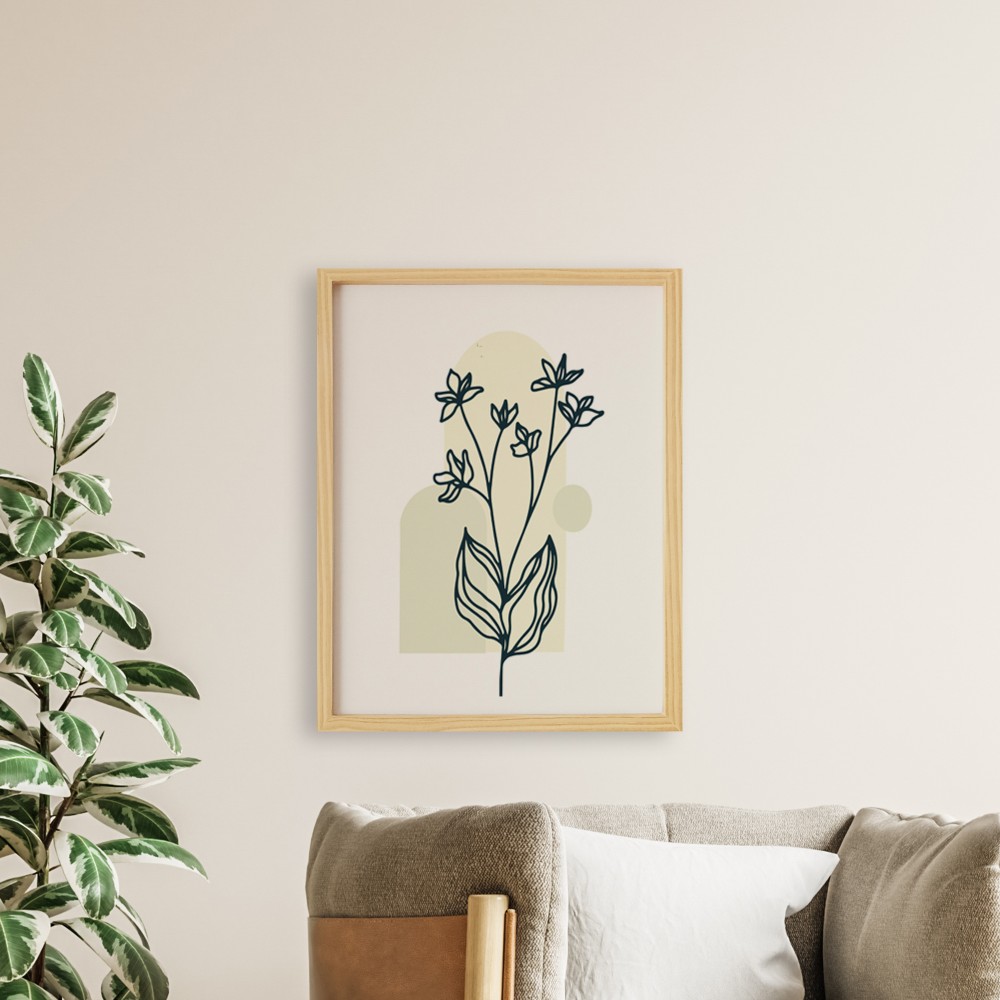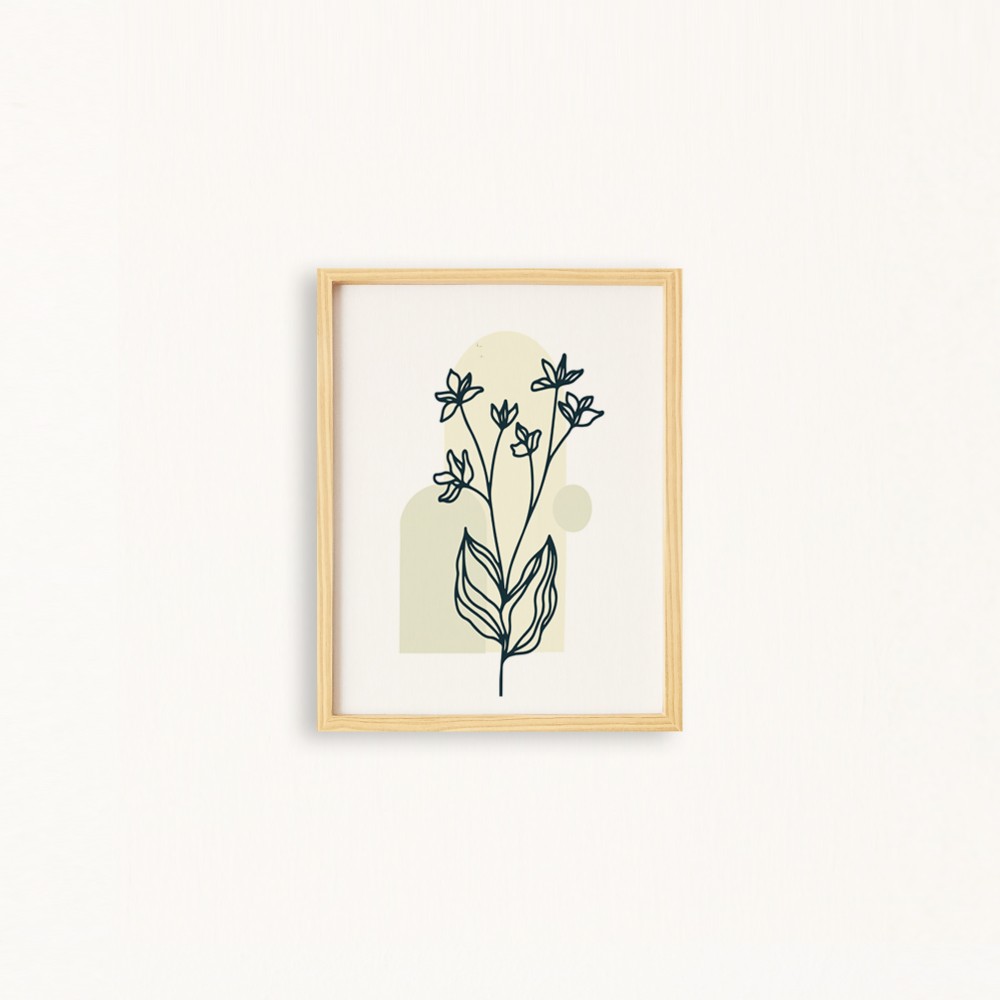 Bohem-Long Leaf1-Uzun Yaprak Doğal Ahşap Çerçeveli Tekli Tablo Seti