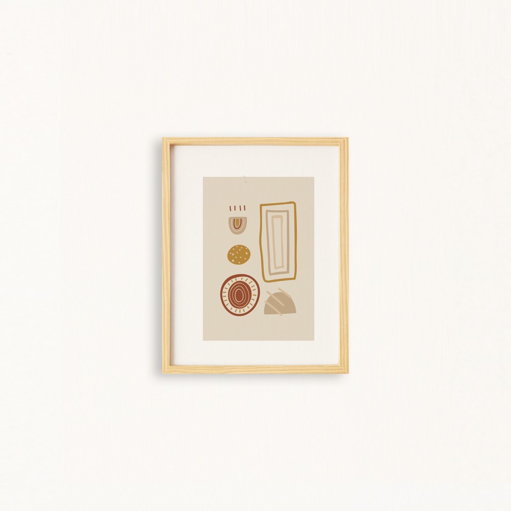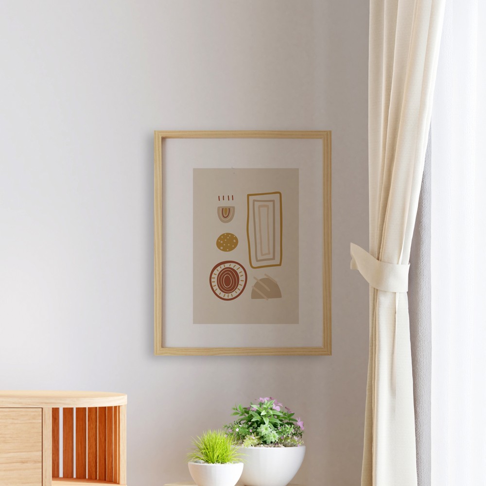 Bohem-Moon Sun1-Ay Güneş Doğal Ahşap Çerçeveli Tekli Tablo Seti