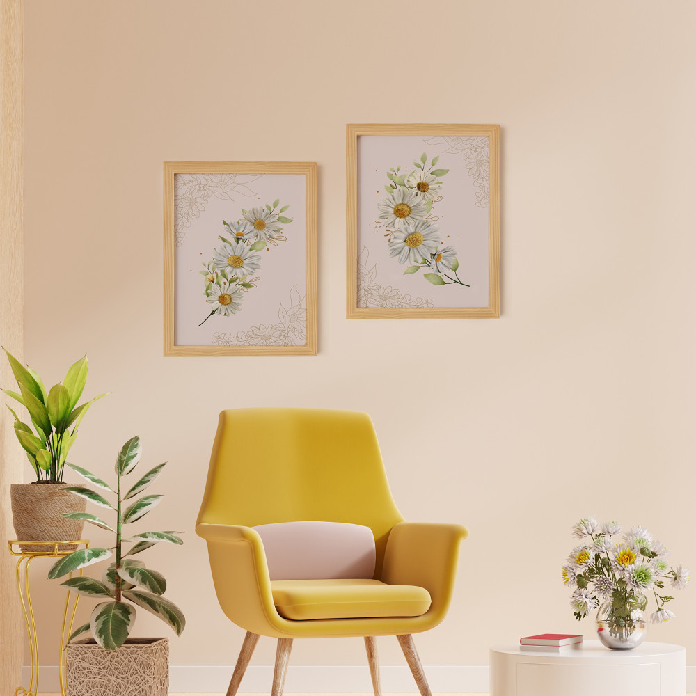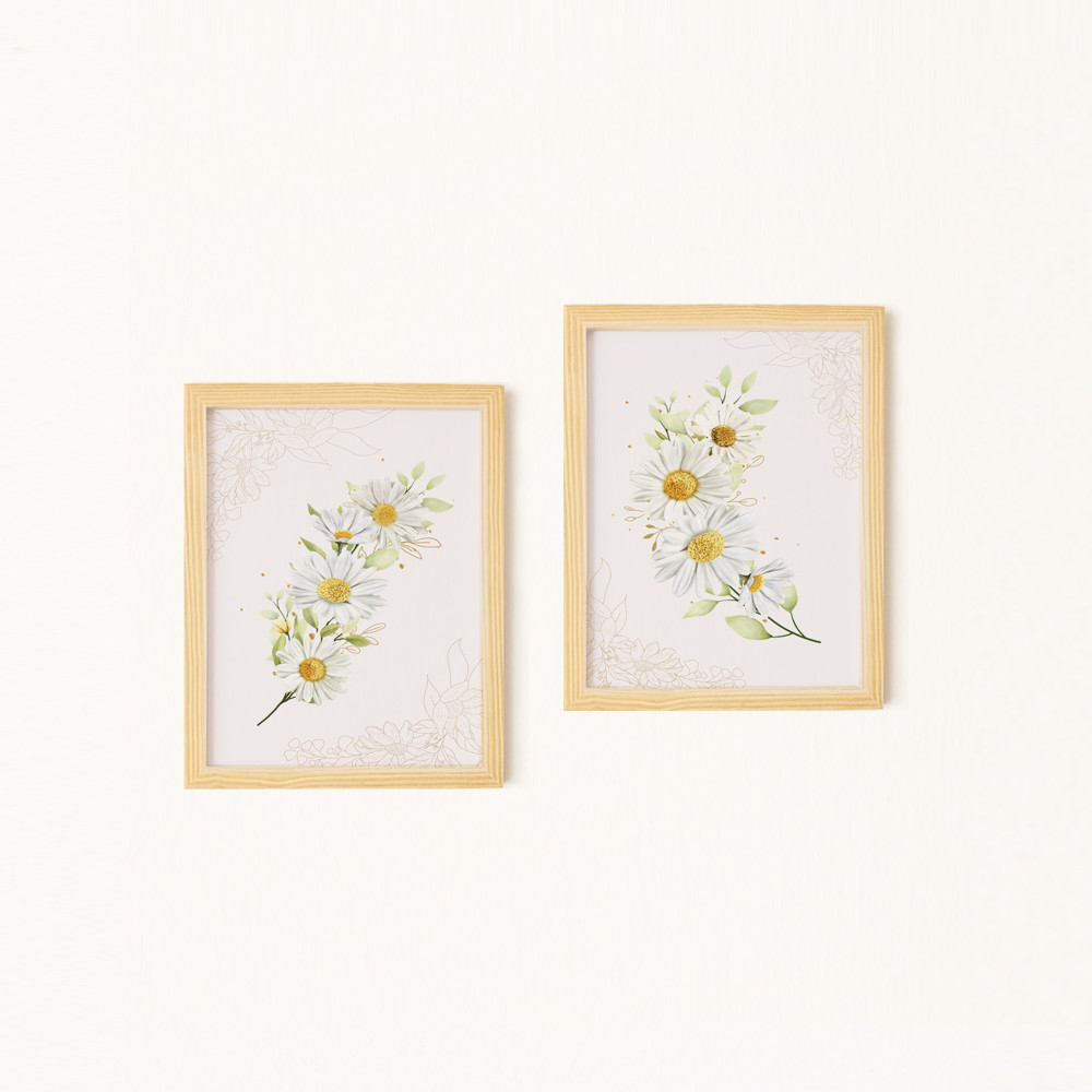 Gold Daisy Altın Papatya Doğal Ahşap Çerçeveli 2'li Tablo Seti
