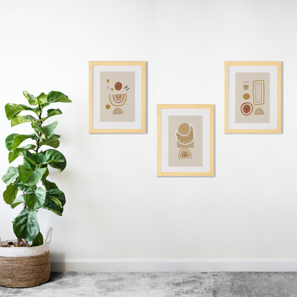 Ay Güneş Doğal Ahşap Çerçeveli 3'lü Tablo Seti