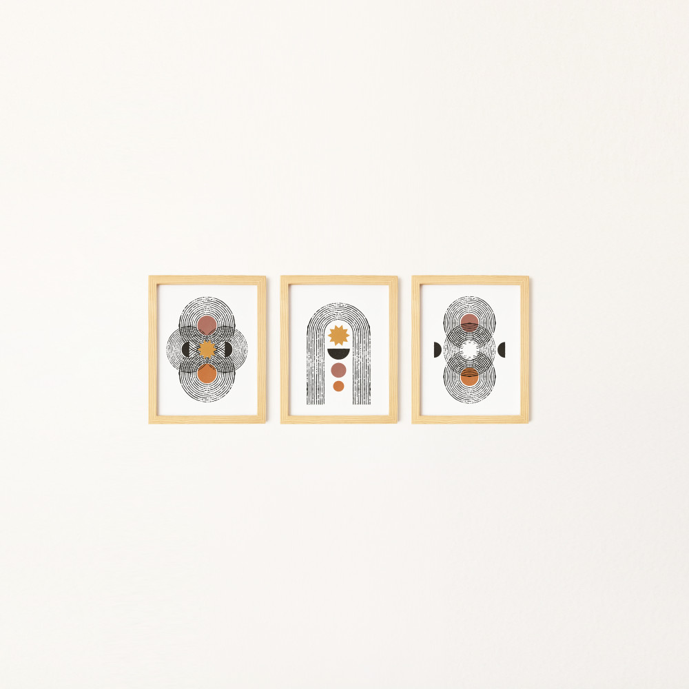 Ay Işığı Doğal Ahşap Çerçeveli 3'lü Tablo Seti