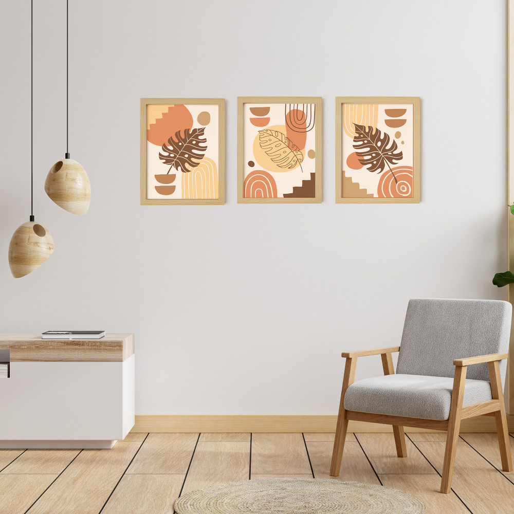 Merdiven Çiçeği Doğal Ahşap Çerçeveli 3'lü Tablo Seti