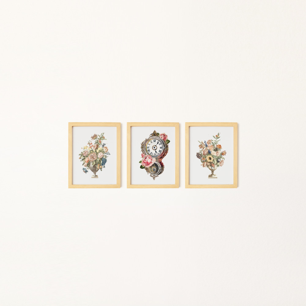 Çiçek Zamanı Doğal Ahşap Çerçeveli 3'lü Tablo Seti