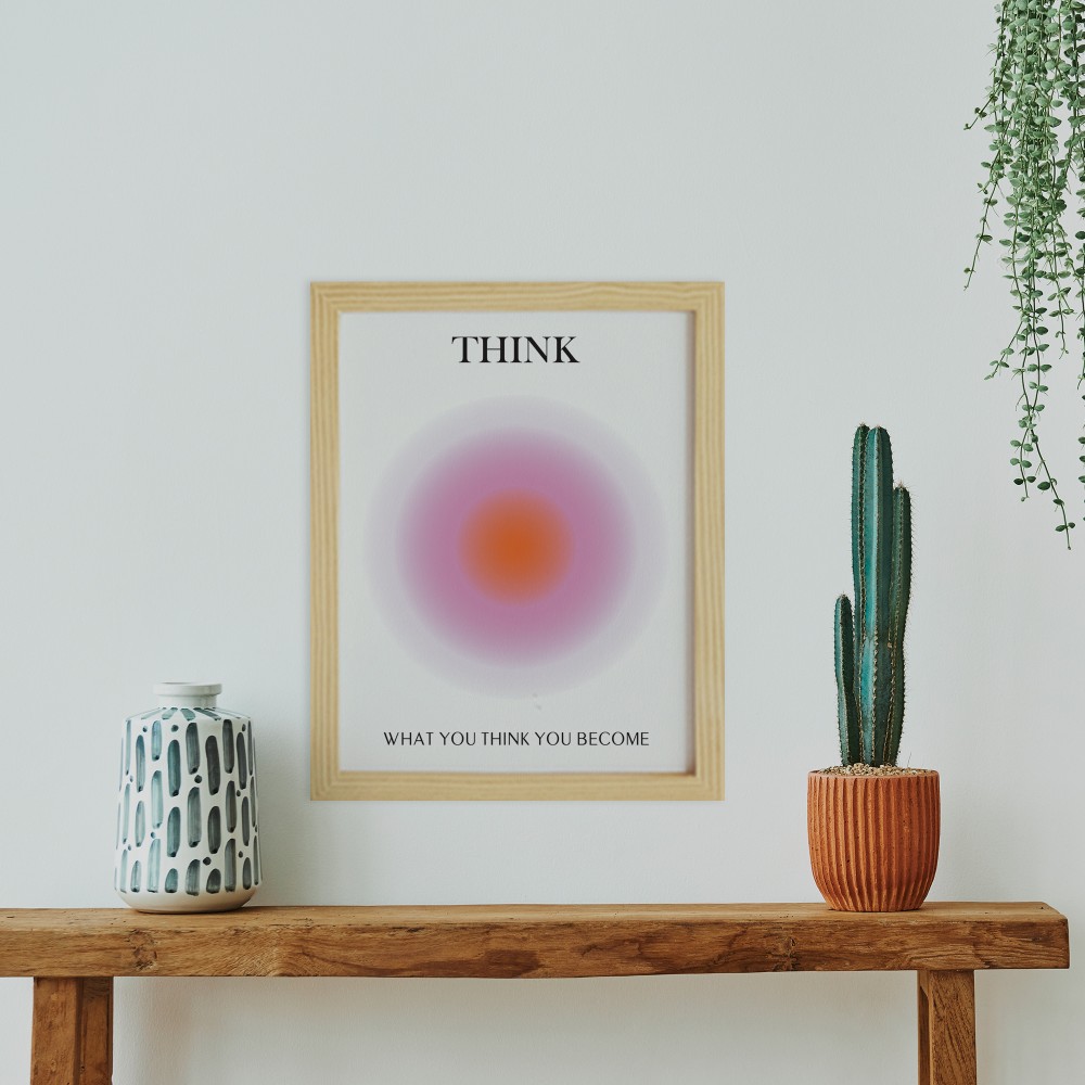 Aura Think Düşünce Doğal Ahşap Çerçeveli Tekli Tablo Seti