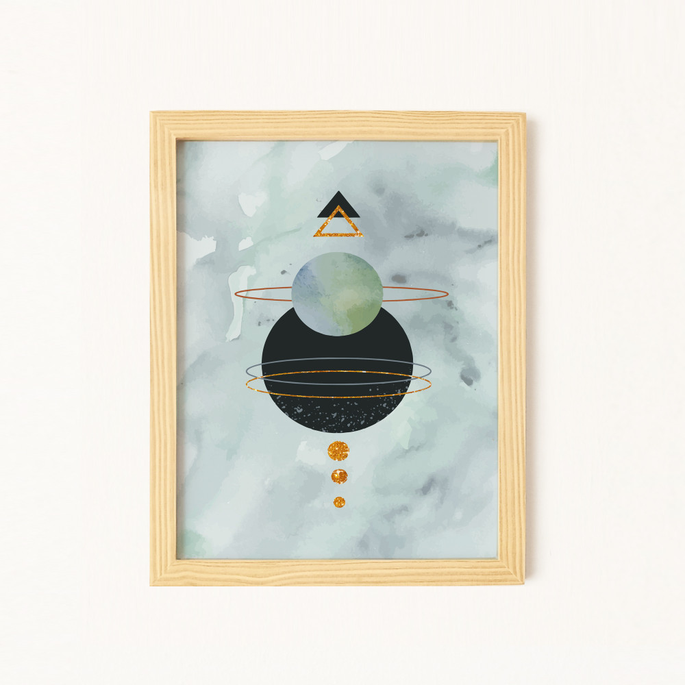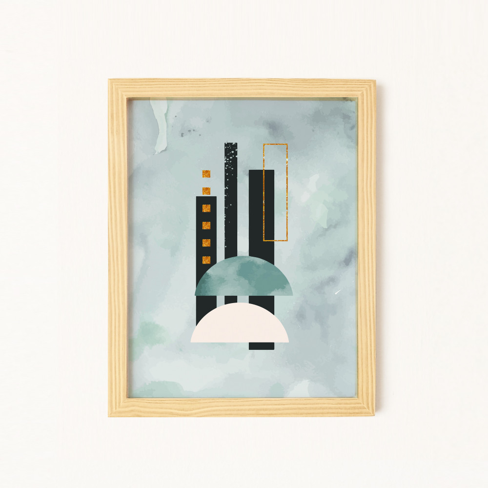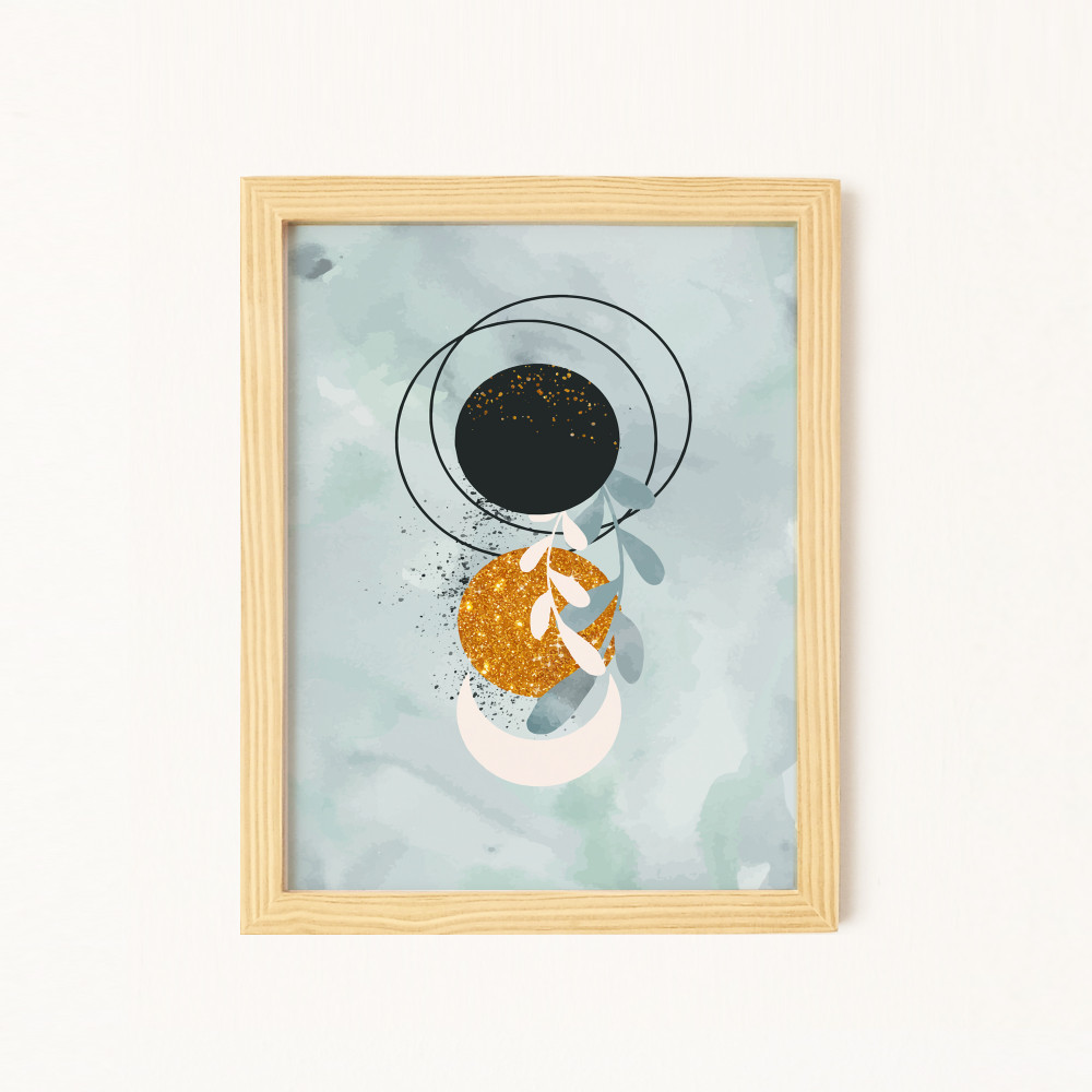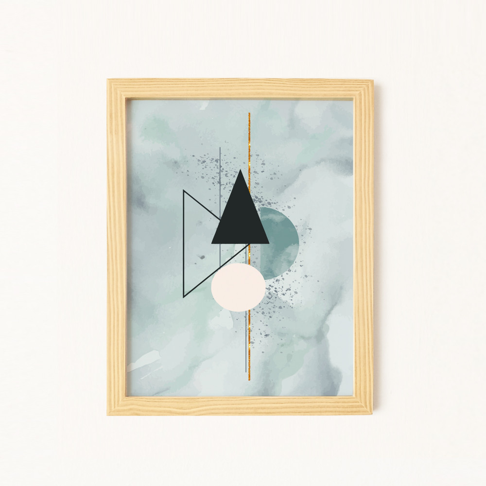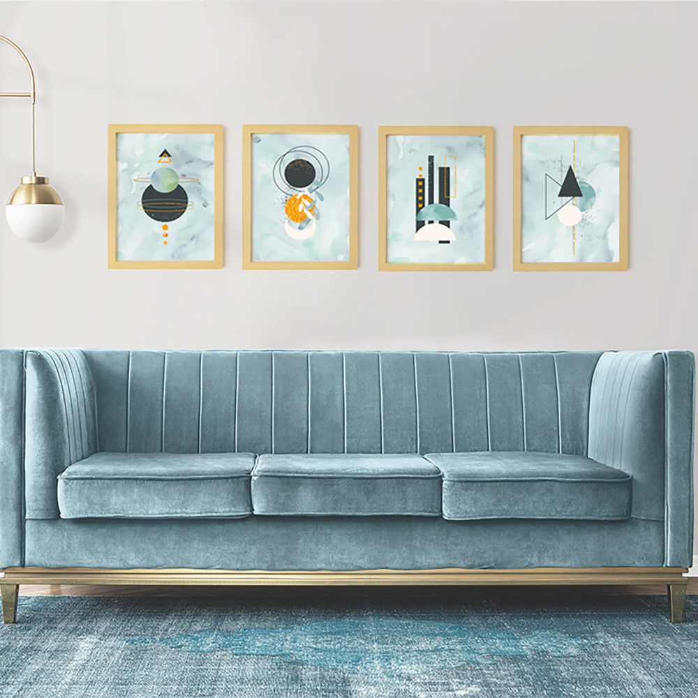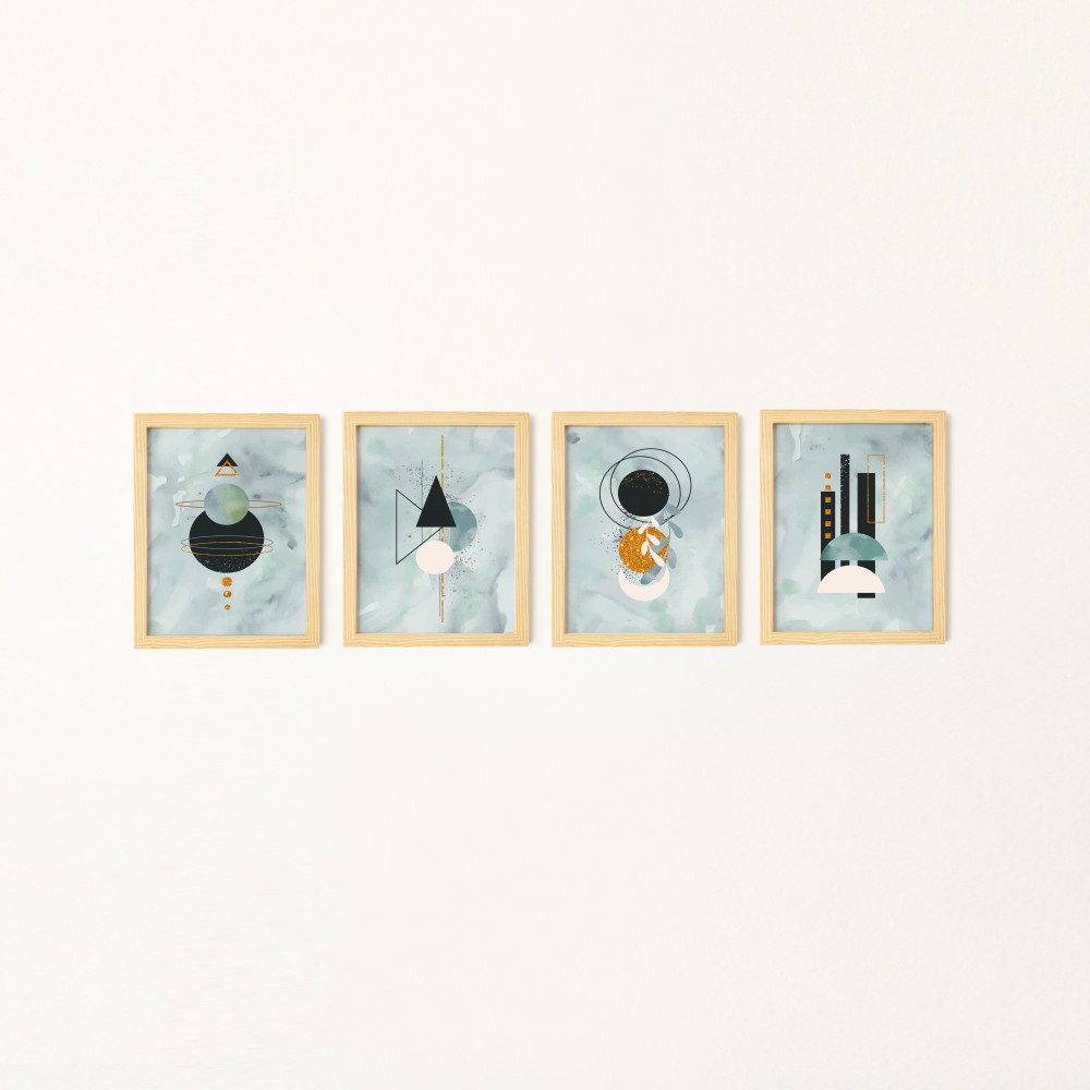Parlak Şekiller Doğal Ahşap Çerçeveli 4'lü Tablo Seti