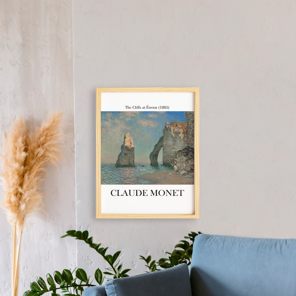 Claude Monet Seashore Cliffs Doğal Ahşap Çerçeveli Tekli Tablo Seti