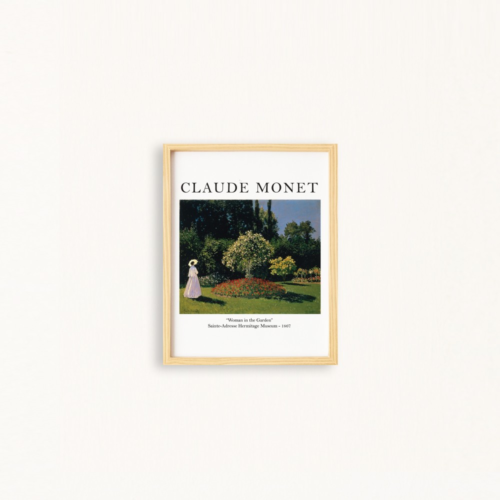 Claude Monet Woman Garden Doğal Ahşap Çerçeveli Tekli Tablo Seti