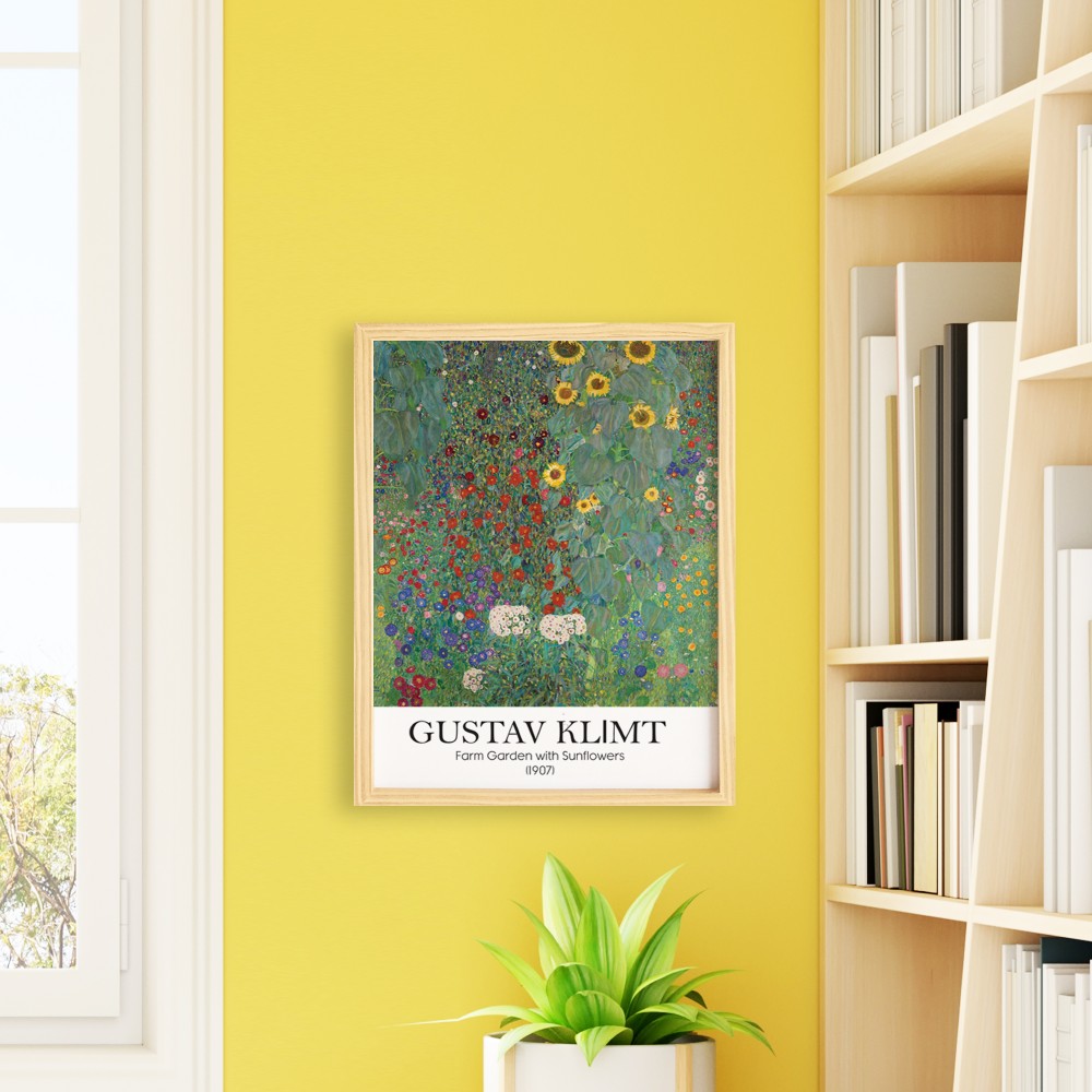 Gustav Klimt Garden Doğal Ahşap Çerçeveli Tekli Tablo Seti