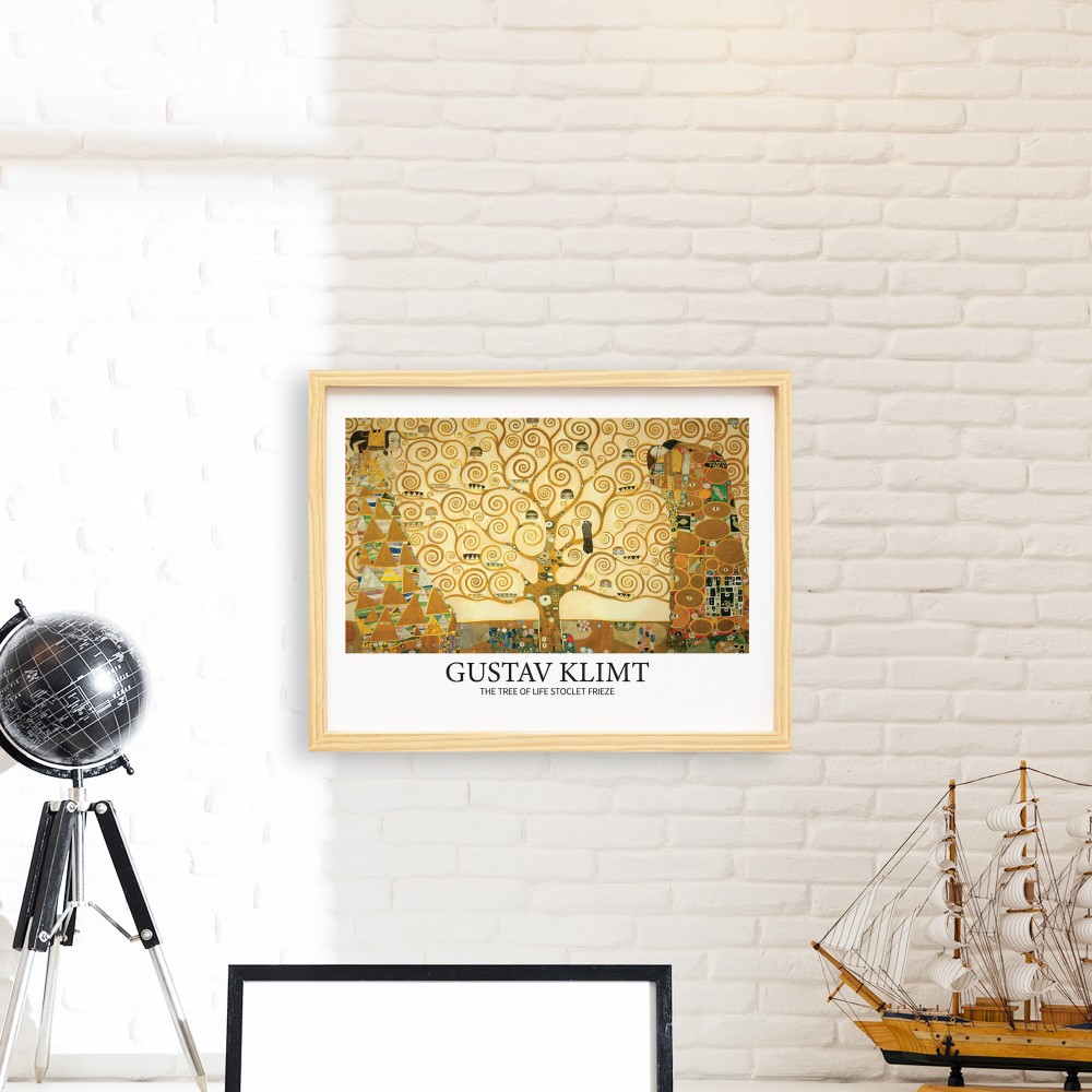 Gustav Klimt Tree Doğal Ahşap Çerçeveli Tekli Tablo Seti