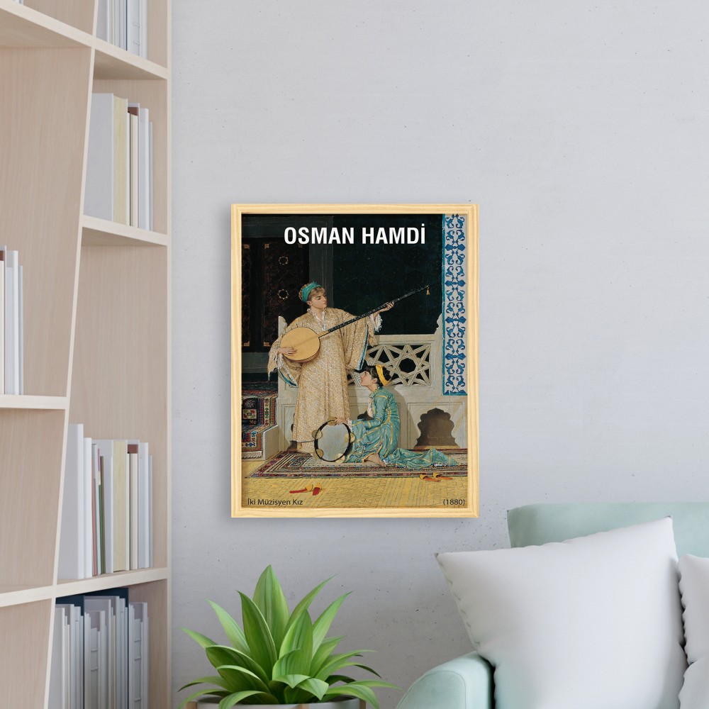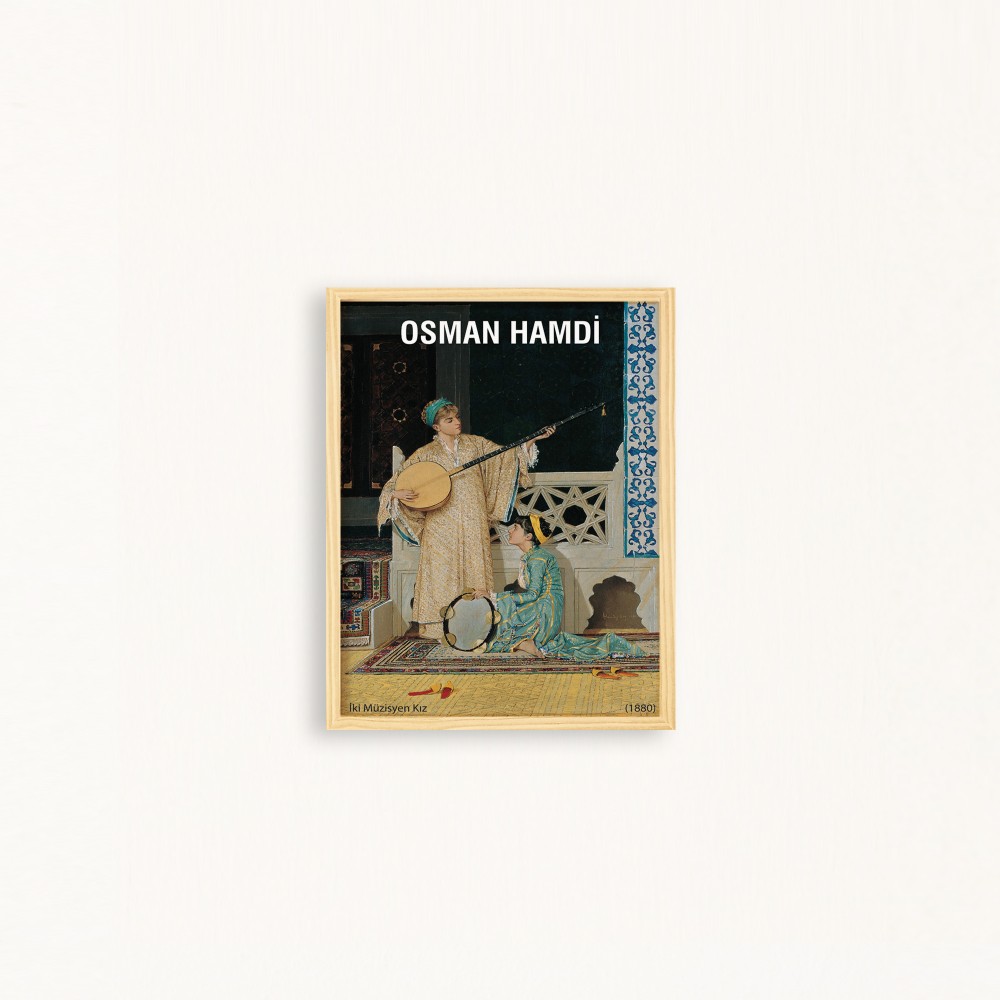 Osman Hamdi İki Müzisyen Doğal Ahşap Çerçeveli Tekli Tablo Seti