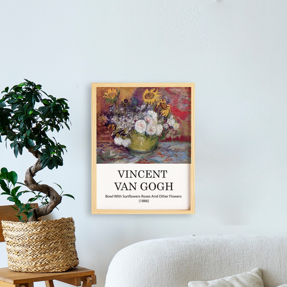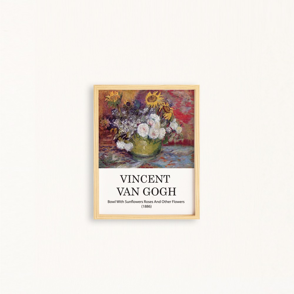 Van Gogh Sunflowers Roses Doğal Ahşap Çerçeveli Tekli Tablo Seti