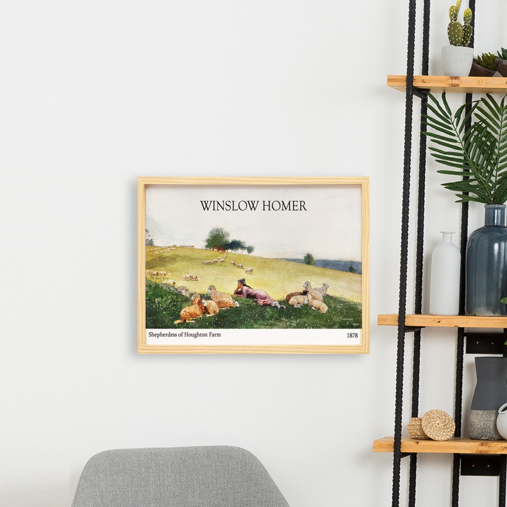 Winslow Homer Sheperdess Doğal Ahşap Çerçeveli Tekli Tablo Seti