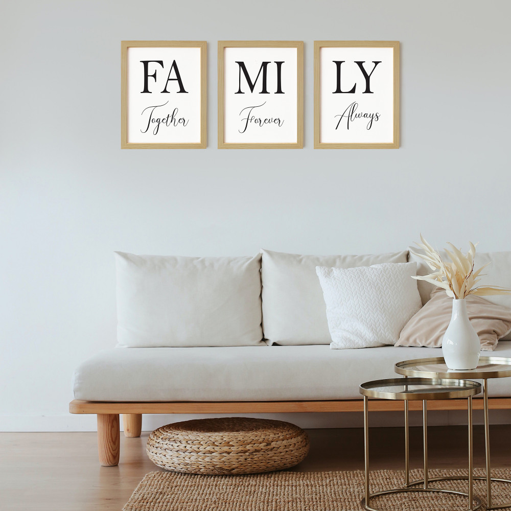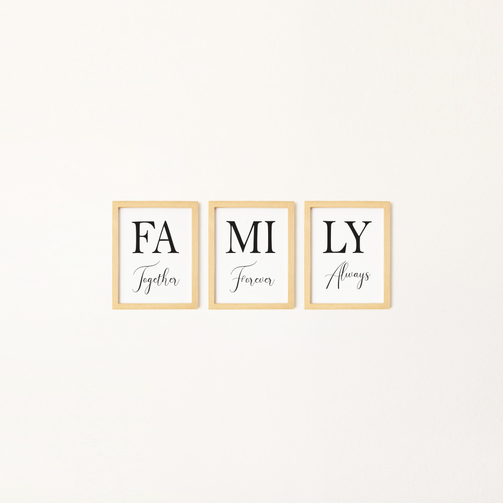Aile Doğal Ahşap Çerçeveli 3'lü Tablo Seti