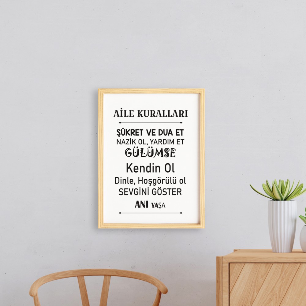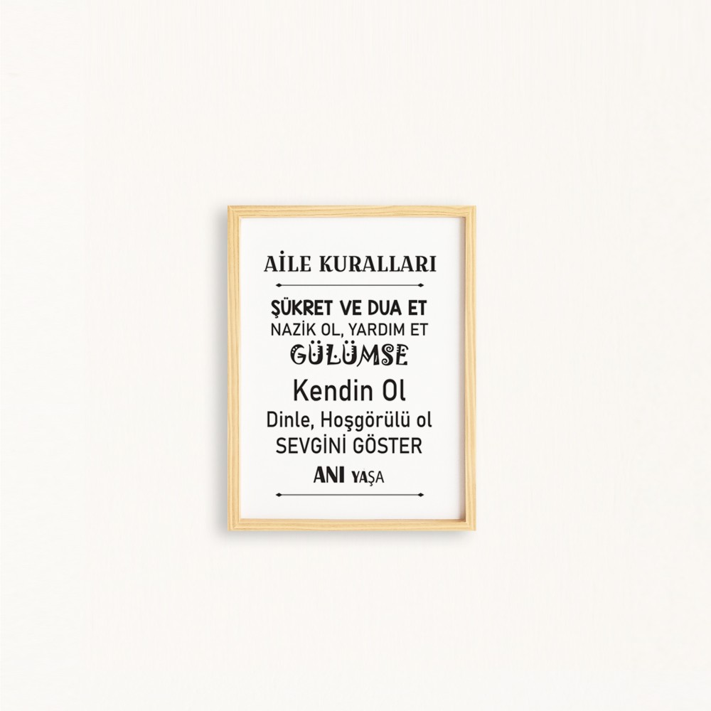 Yazı Aile Kuralları Doğal Ahşap Çerçeveli Tekli Tablo Seti