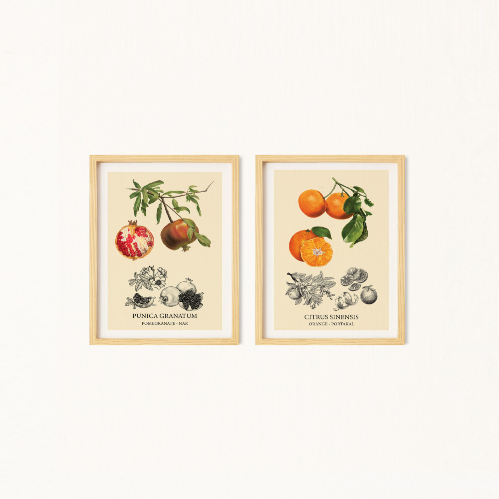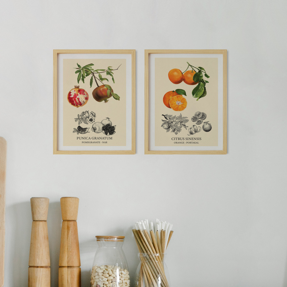 Portakal Nar Vintage Ahşap & Lamine Çerçeveli Çoklu 2'li Tablo Seti