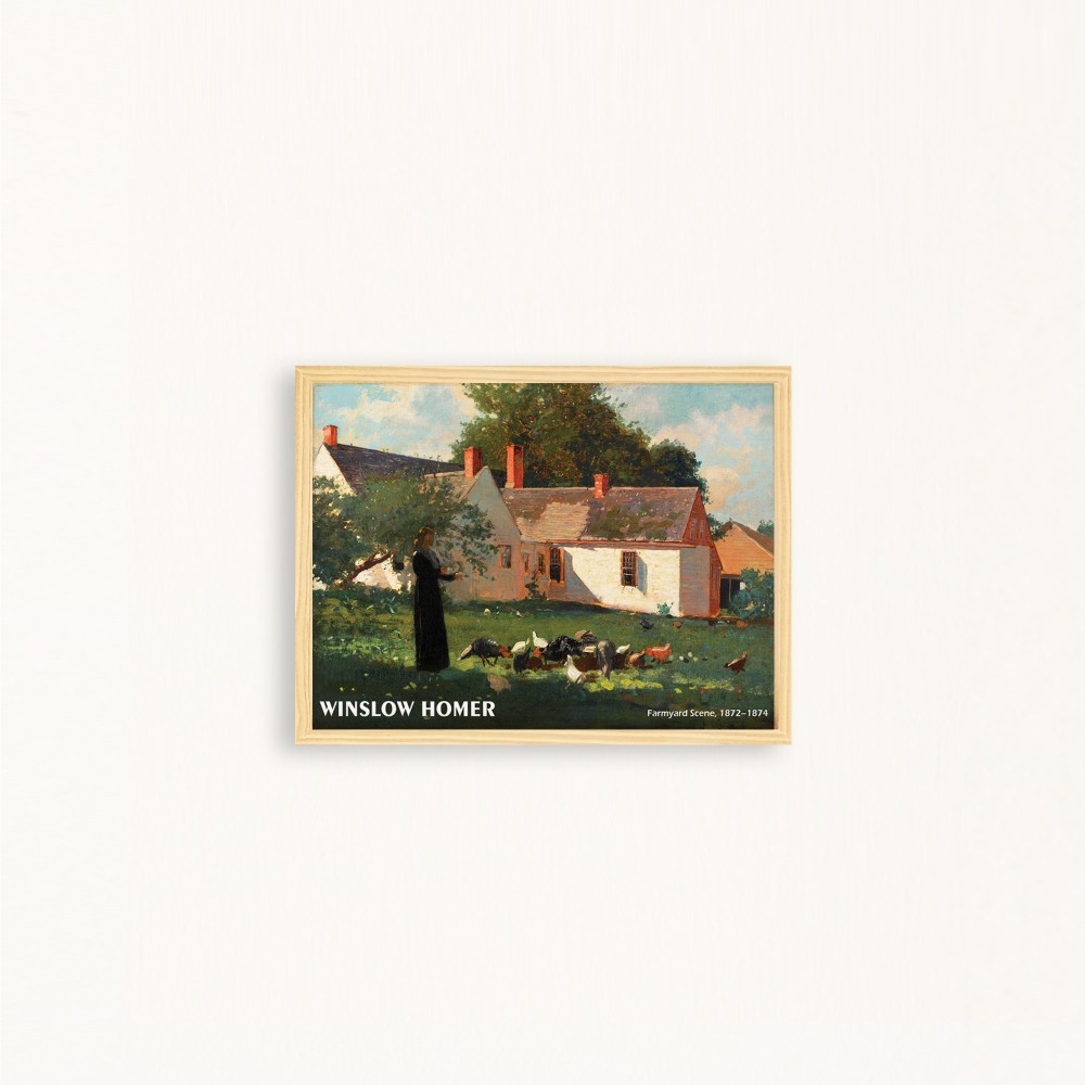Winslow Homer Farmyard Doğal Ahşap Çerçeveli Tekli Tablo Seti